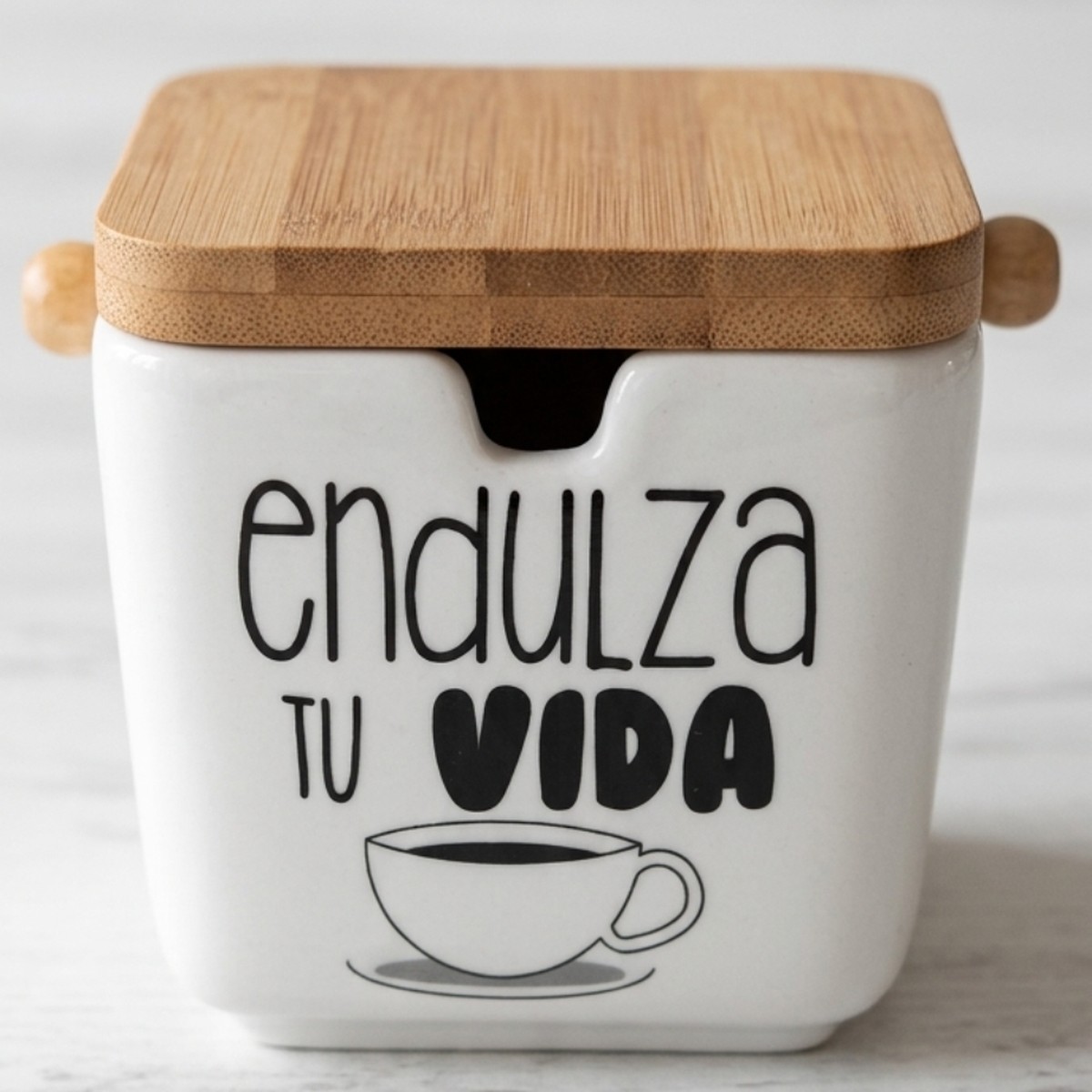 Azucarero Cerámica con Tapa Madera “Endulza tu Vida”