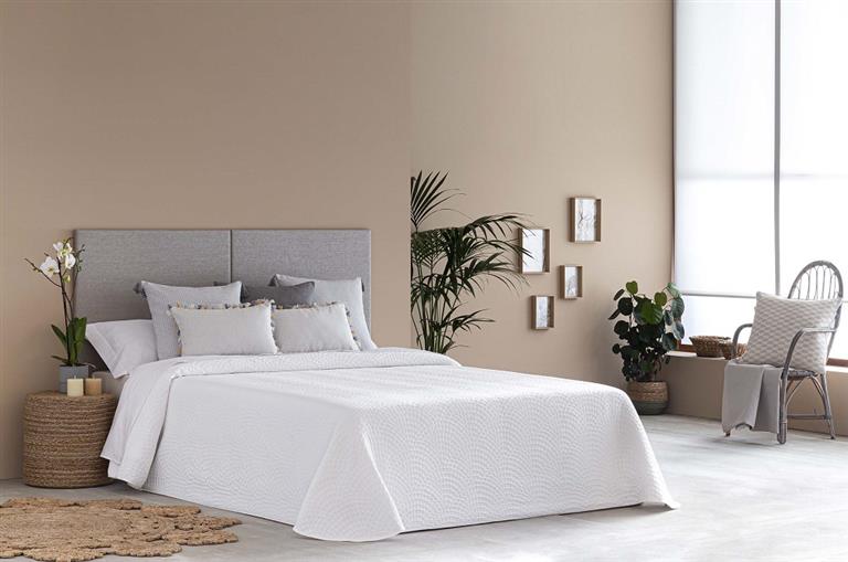 Colcha de tejido jacquard con diseño tipo onda en color blanco. Elegante, fresca y perfecta para dar un toque sofisticado y luminoso a tu dormitorio.