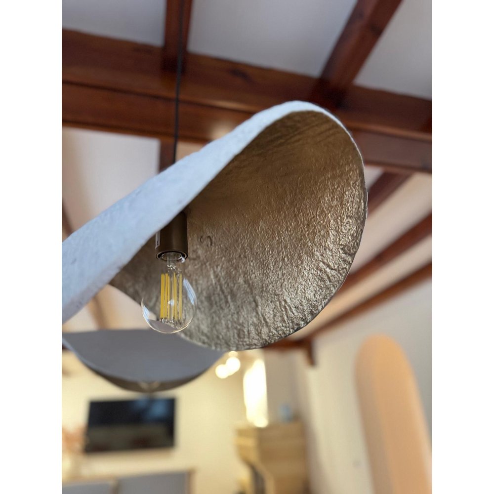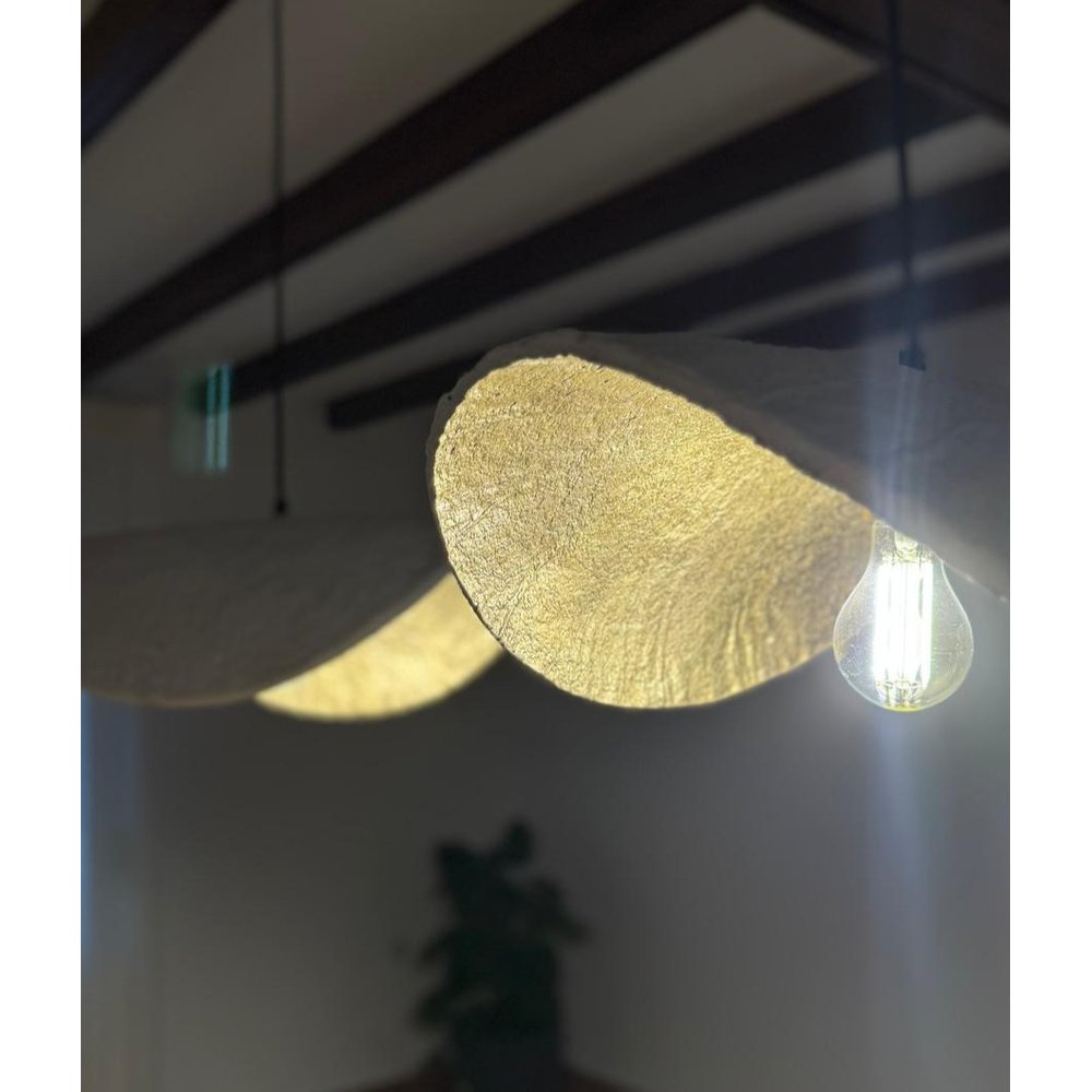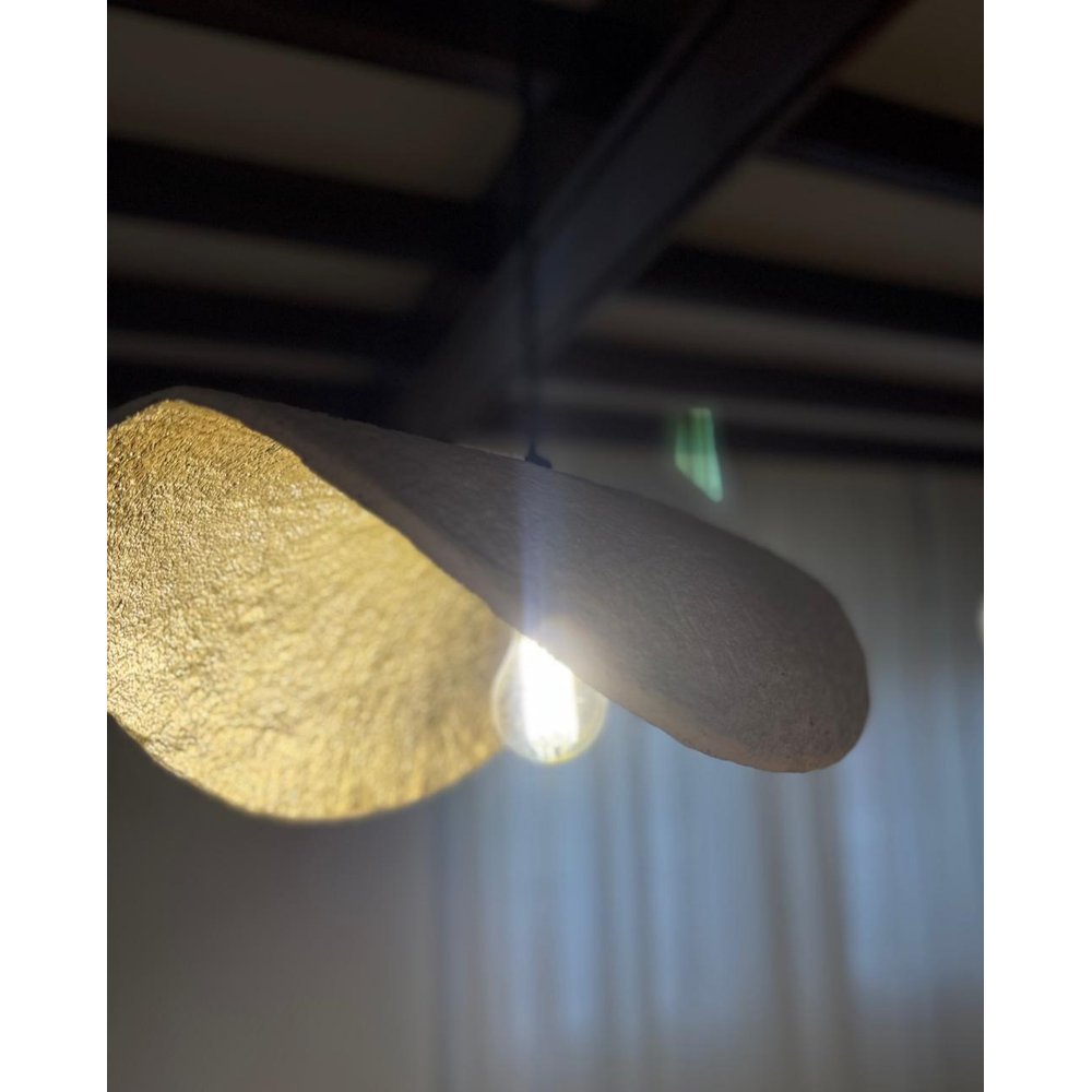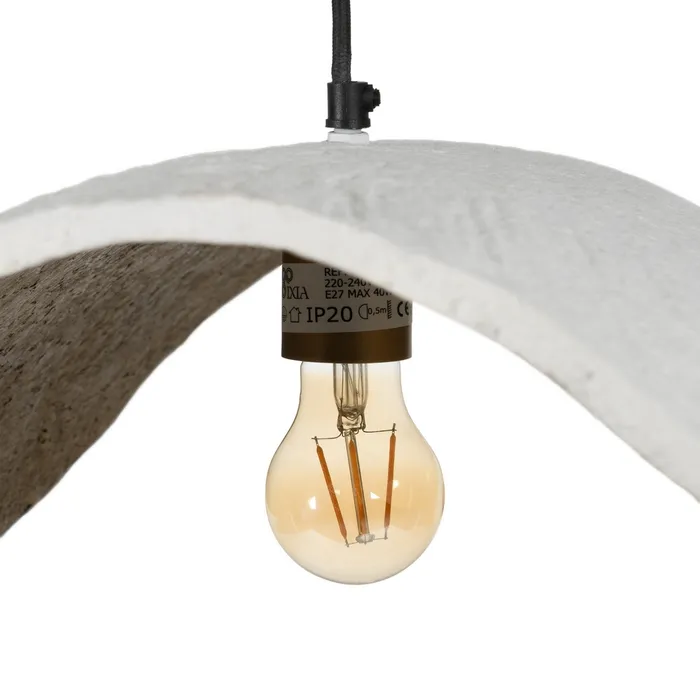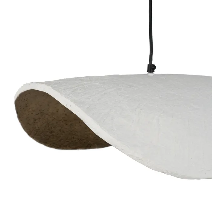 Aporta un toque artístico y natural a tu hogar con esta lámpara colgante de diseño orgánico en blanco. Su pantalla de líneas onduladas y forma irregular, hecha de fibra natural ecológica, convierte cualquier espacio en un ambiente cálido, moderno y sofisticado.