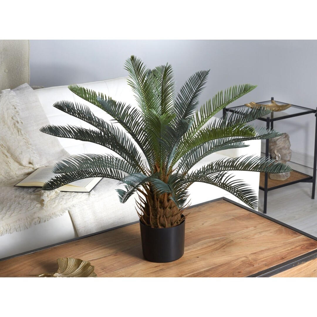 Planta Zica artificial de 65 cm con acabado realista en color verde. Ideal para decorar cualquier estancia sin mantenimiento.